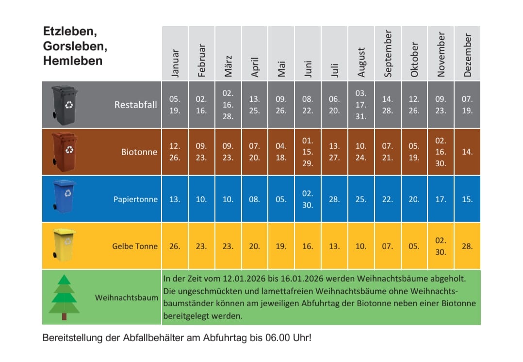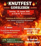 Der Angelverein Gorsleben e.V. lädt zum Knutfest, dieses mal nach Gorsleben. Weihnachtsbäume können auch am 03.01. und 10.01. am Denkmalsgarten in Etzleben zur Abholung bereitgelegt werden.