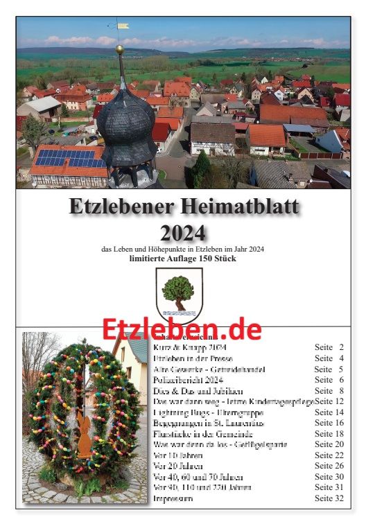Mit einer letzten Lesung durch das Redaktuersteam wurde das neueste Heimatheft abgesegnet und der Druckauftrag ausgelöst. Wie jedes Jahr wird das Heft, finanziert vom Heimatverein Etzleben - unser Dorf e.V., in einer limitierten Auflage herausgegeben und beleuchtet die Etzlebener Ereignisse des Kalenderjahres 2024.