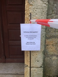 Doch eine großzügige Spende von 5.000 € und Gelder der Kirche ermöglichten zumindest eine vorläufige Sicherung und nun hoffentlich wieder das gefahrlose Betreten des Kirchengeländes und des Friedhofes.