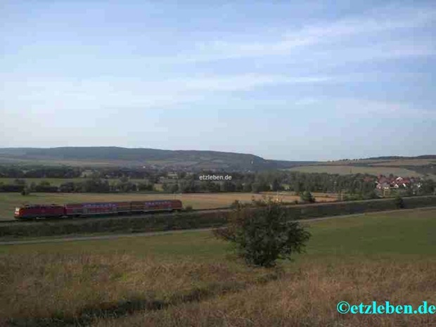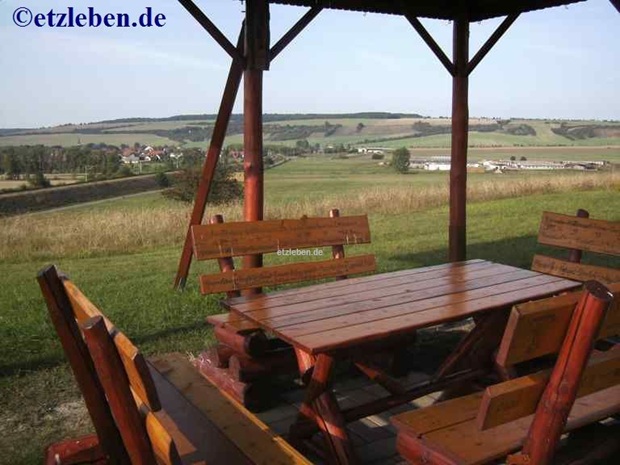 Daneben bietet sich dem Betrachter ein weites Panorama über das das Thüringer Becken hinweg und auf die Thüringer Pforte mit den Ruinen der Haken- und Sachsenburg.