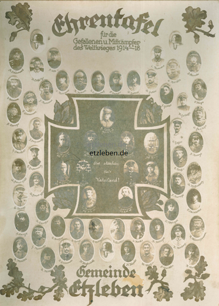 Wenngleich durch Kriegshandlungen des 1. Weltkrieges nicht direkt betroffen, trafen die Folgen Etzleben, wie viele Orte in Deutschland, zumindest mittelbar.