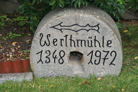 Erstmalig 1348 als „ werd mullin“ in einer Urkunde des Klosters Kapelle erwähnt, wird schon 1355 von der „Wertmüllen“ gesprochen. Mit dem Beginn der Elektrifizierung und dem Anschluss der umliegenden Ortschaften an das Stromnetz, war es den Bauern nun möglich, das für ihr Vieh benötigte Schrot selber, sowie wesentlich schneller und kostengünstiger, zu mahlen. Für die Müller der Umgebung, so auch für den Werthmüller und auch den Teichmüller brach damit ein einträglicher Geschäftszweig weg.