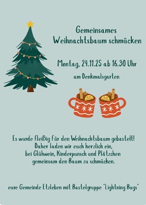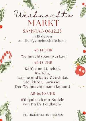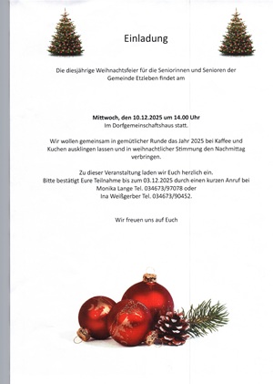 Anstelle einer Weihnachtsfeier wird Etzleben - unser Dorf e.V. eine Ehrenamtsgala für alle Unterstützer ausrichten. Bei Speis & Trank, mit guter Laune und Musik wollen wir uns gemeinsam selber feiern und das Jahr 2024 Revue passieren lassen. Die Einladungen sind auf dem Weg.